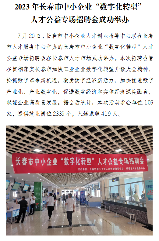 2023年长春市中小企业“数字化转型”人才公益专场招聘会成功举办