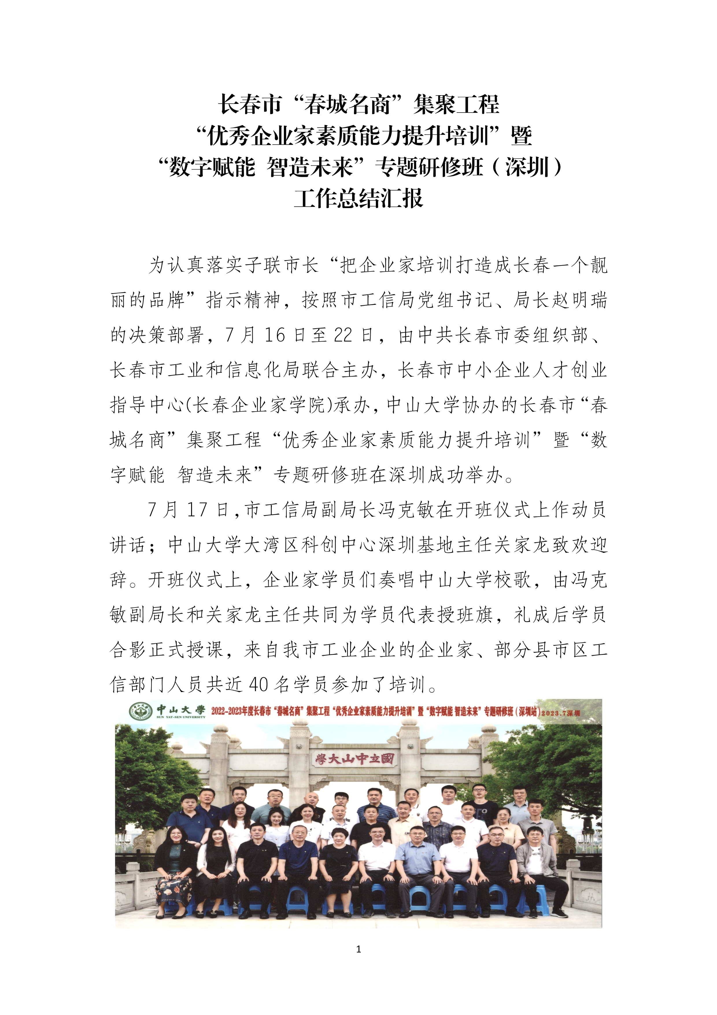 长春市“春城名商”集聚工程“优秀企业家素质能力提升培训”暨“数字赋能 智造未来”专题研修班(深圳)工作总结汇报