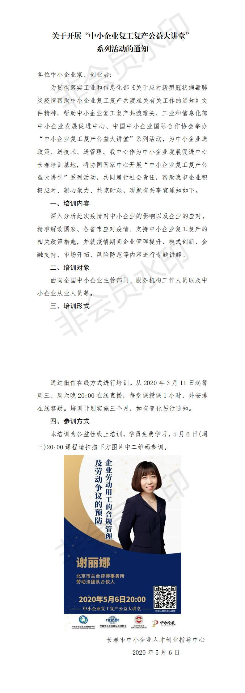 关于开展“中小企业复工复产公益大讲堂”系列活动的通知