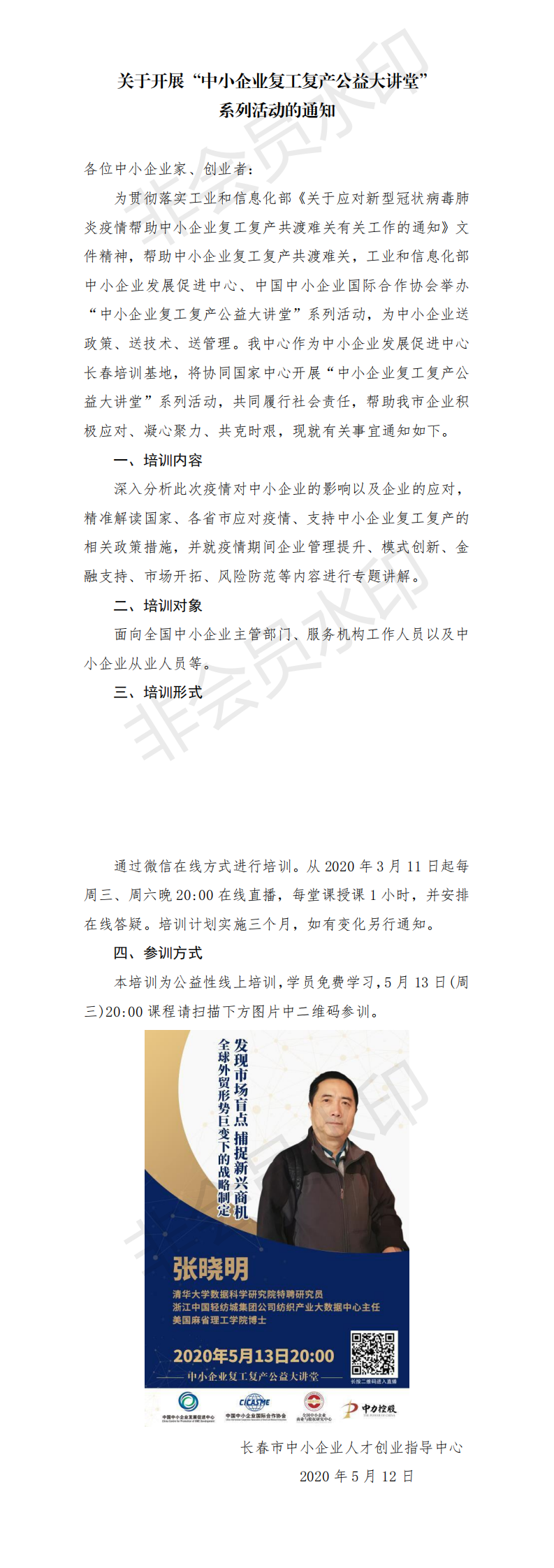 关于开展“中小企业复工复产公益大讲堂”系列活动的通知