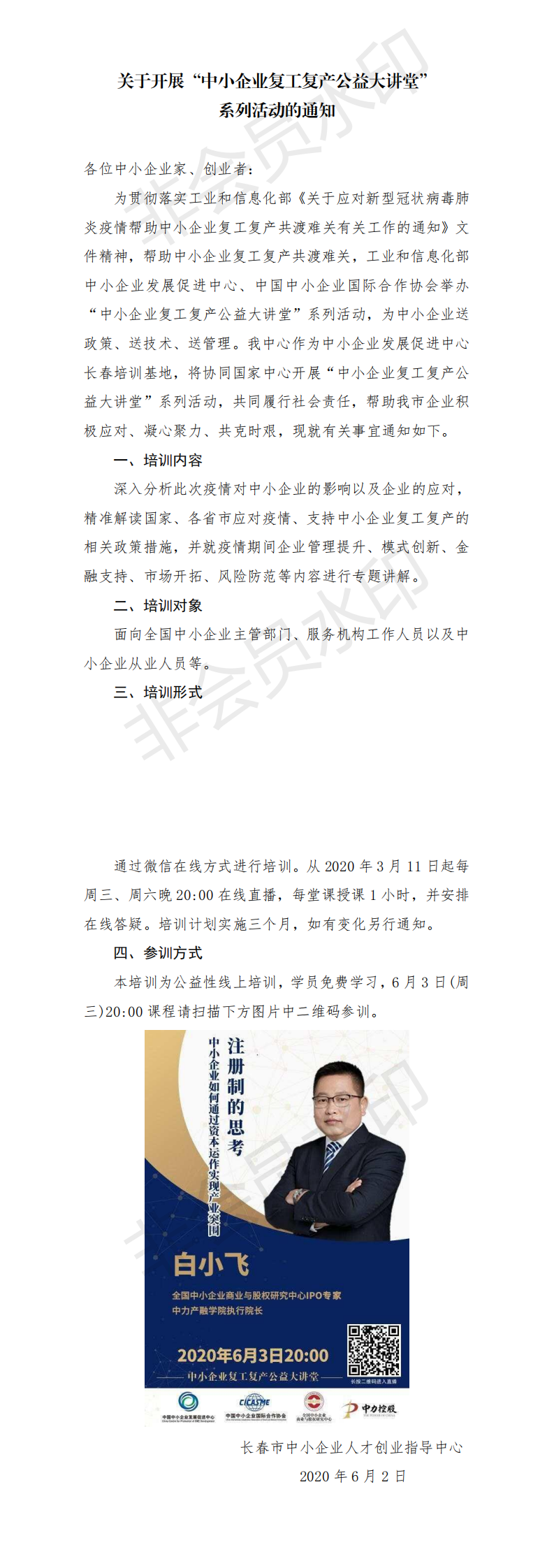 关于开展“中小企业复工复产公益大讲堂”系列活动的通知