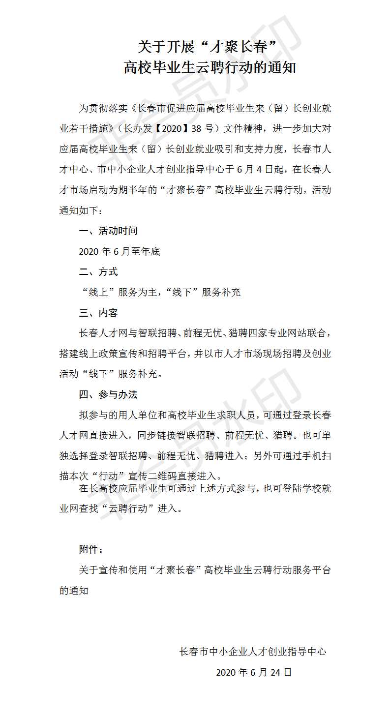 关于开展“才聚长春”高校毕业生云聘行动的通知