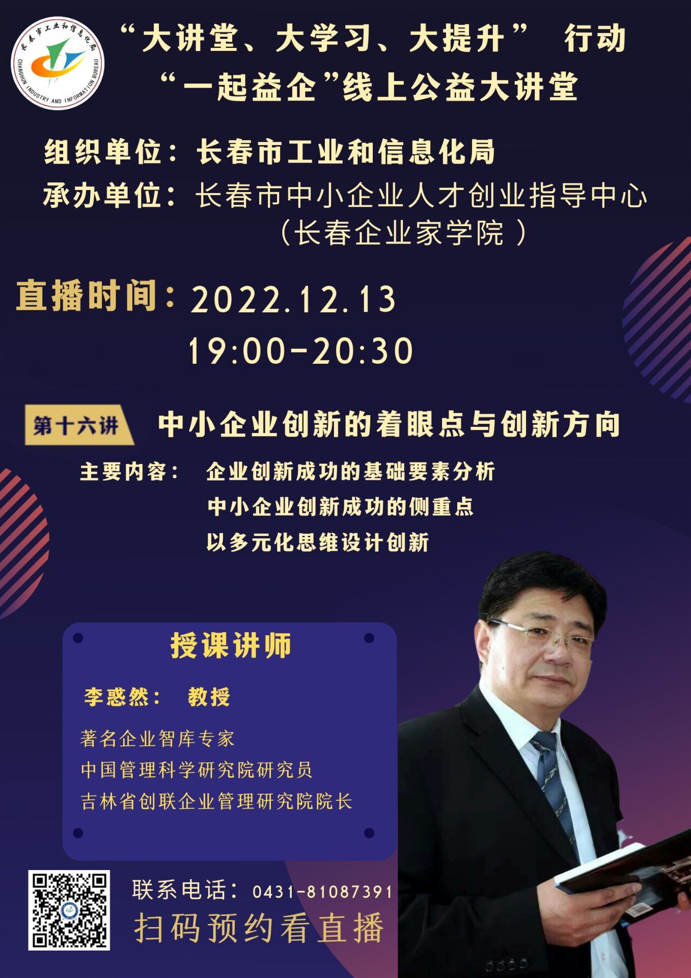 《中小企业创新的着眼点与创新方向》定于12月13日直播分享