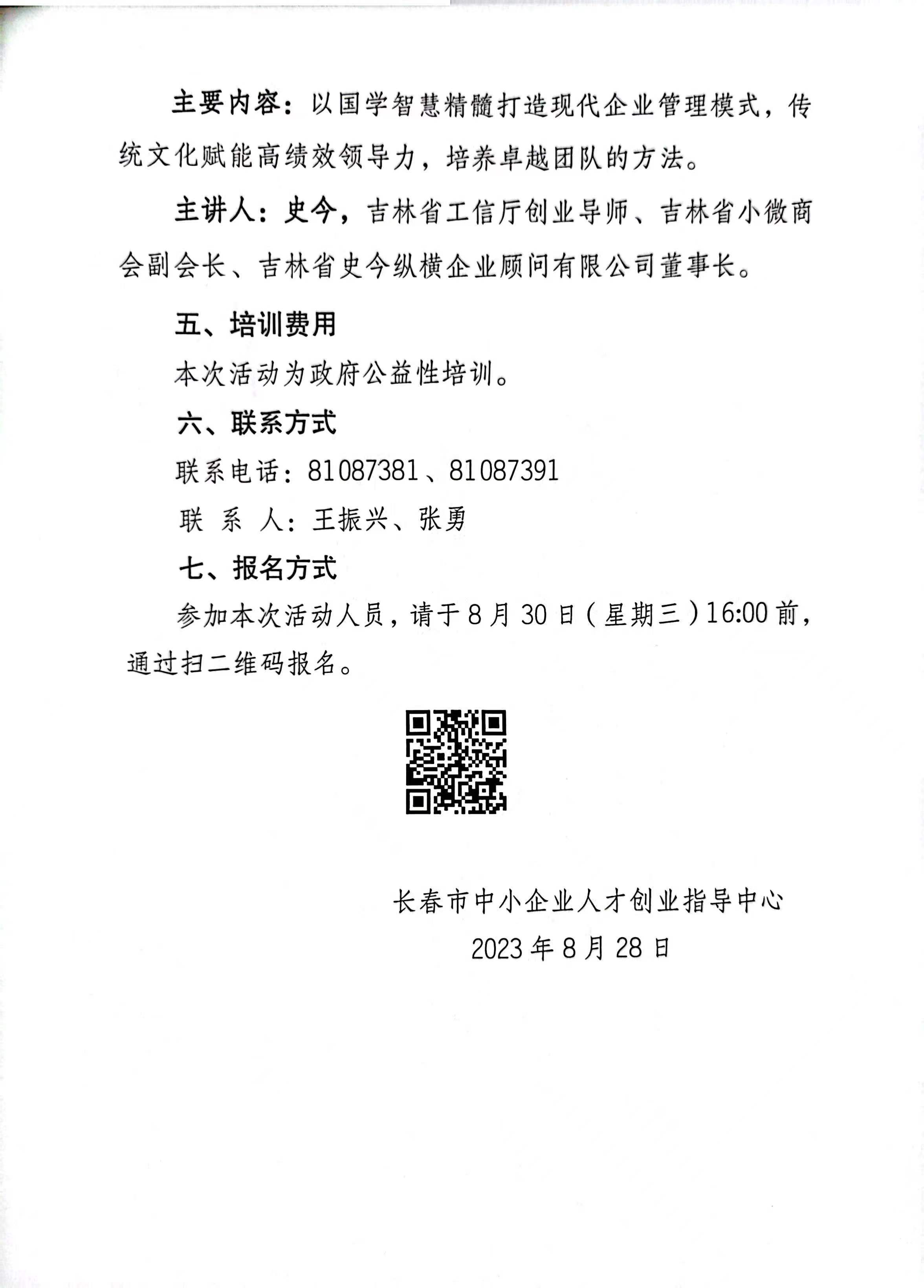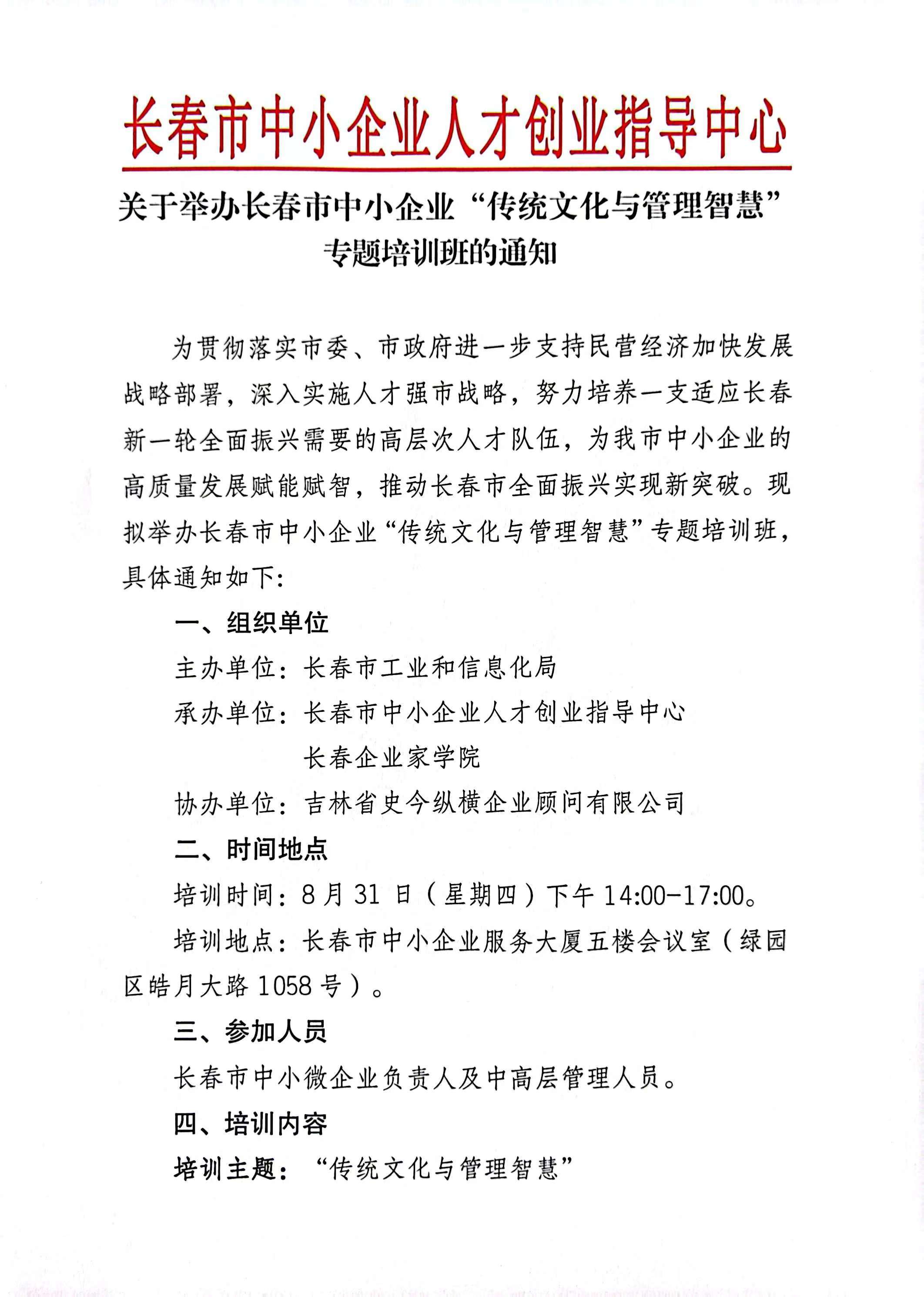 关于举办长春市中小企业“传统文化与管理智慧”专题培训班的通知