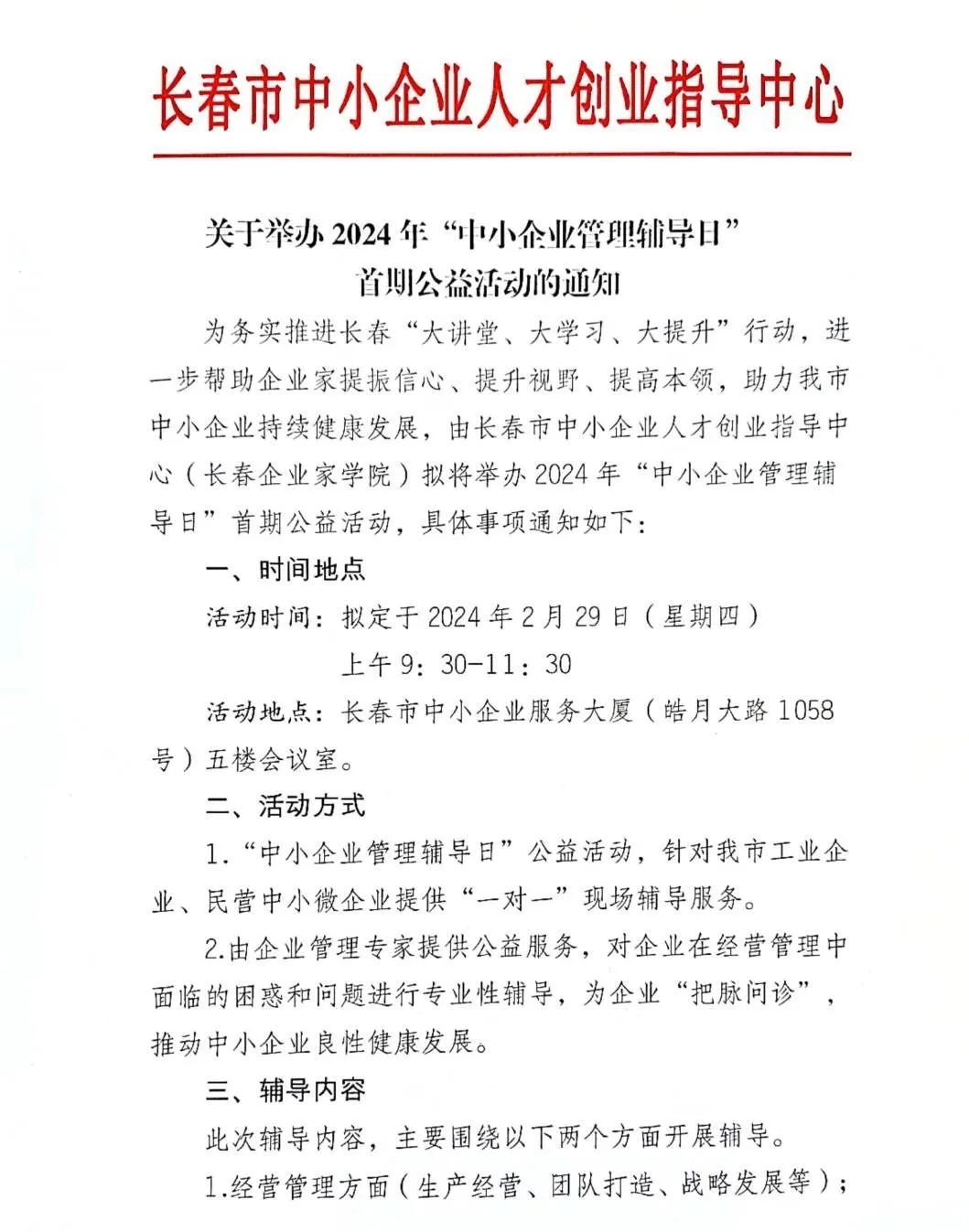 关于举办2024年“中小企业管理辅导日”首期公益活动的通知