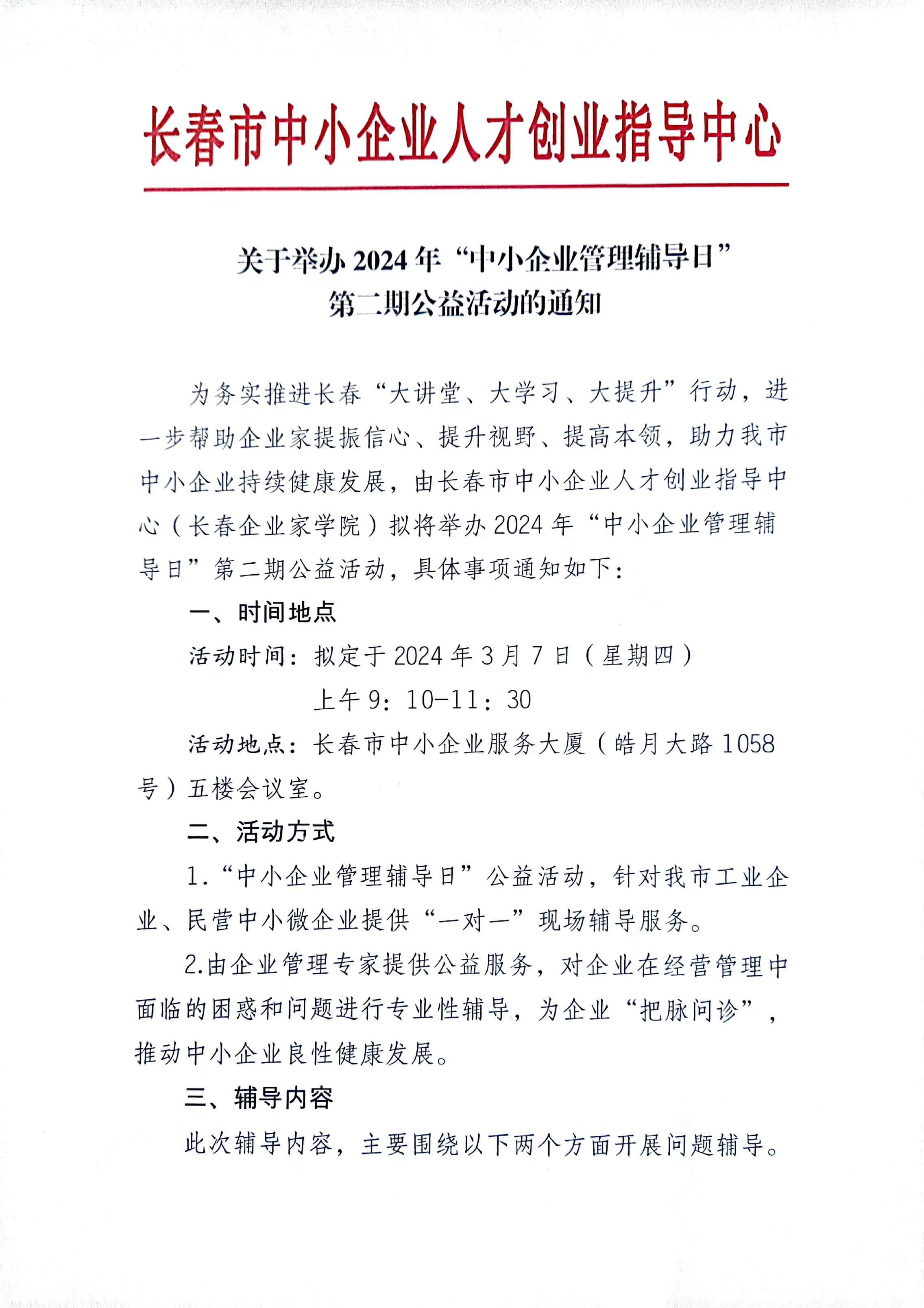 关于举办2024年“中小企业管理辅导日”第二期公益活动的通知