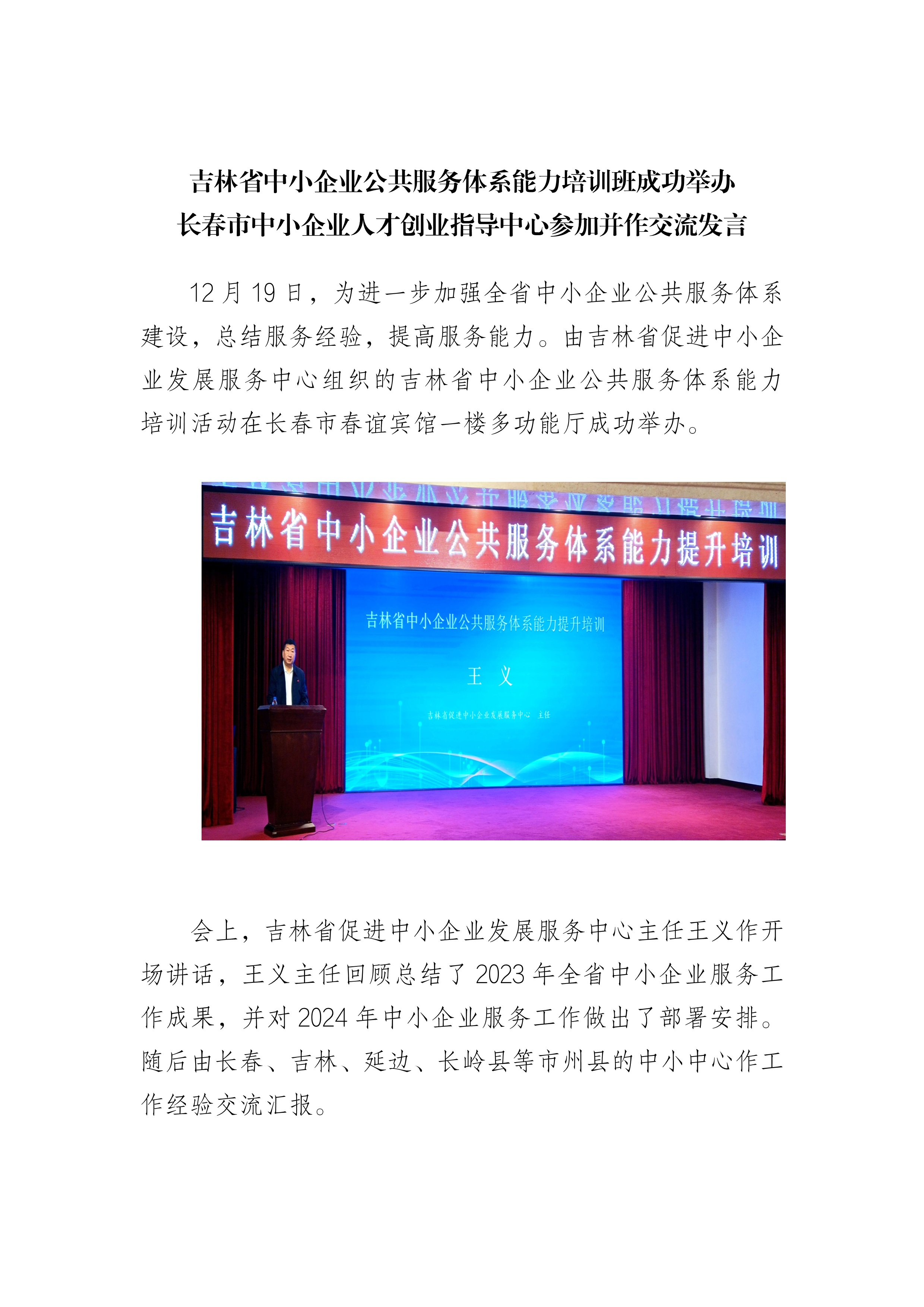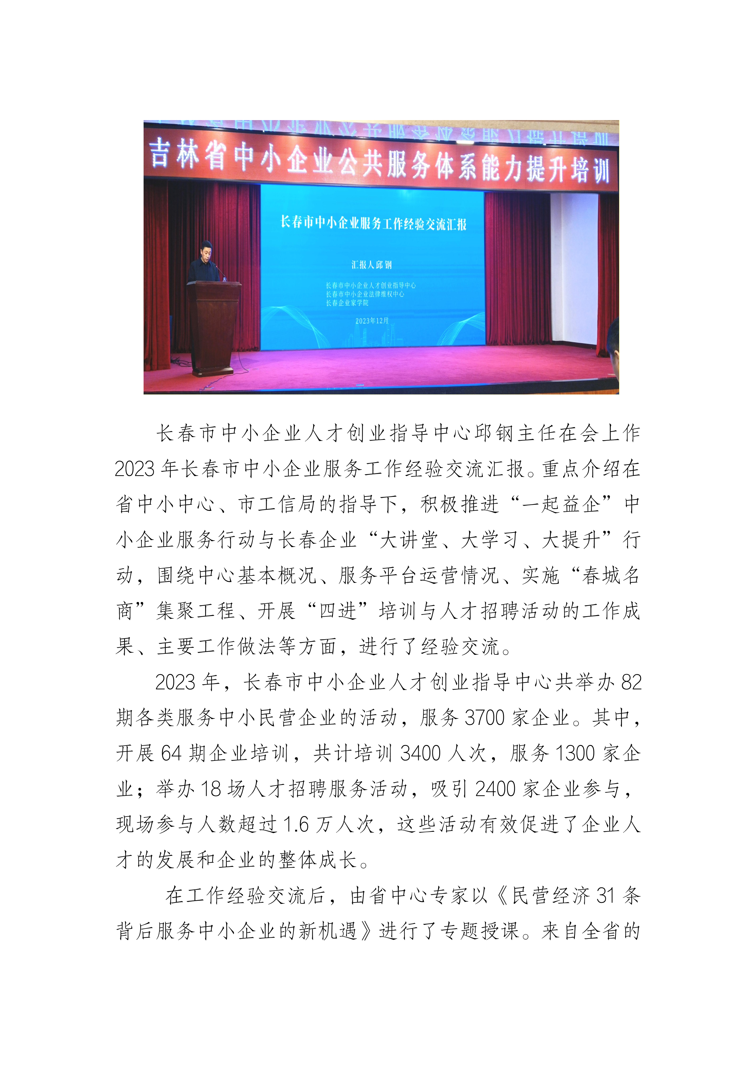 吉林省中小企业公共服务体系能力培训班成功举办 长春市中小企业人才创业指导中心参加并作交流发言