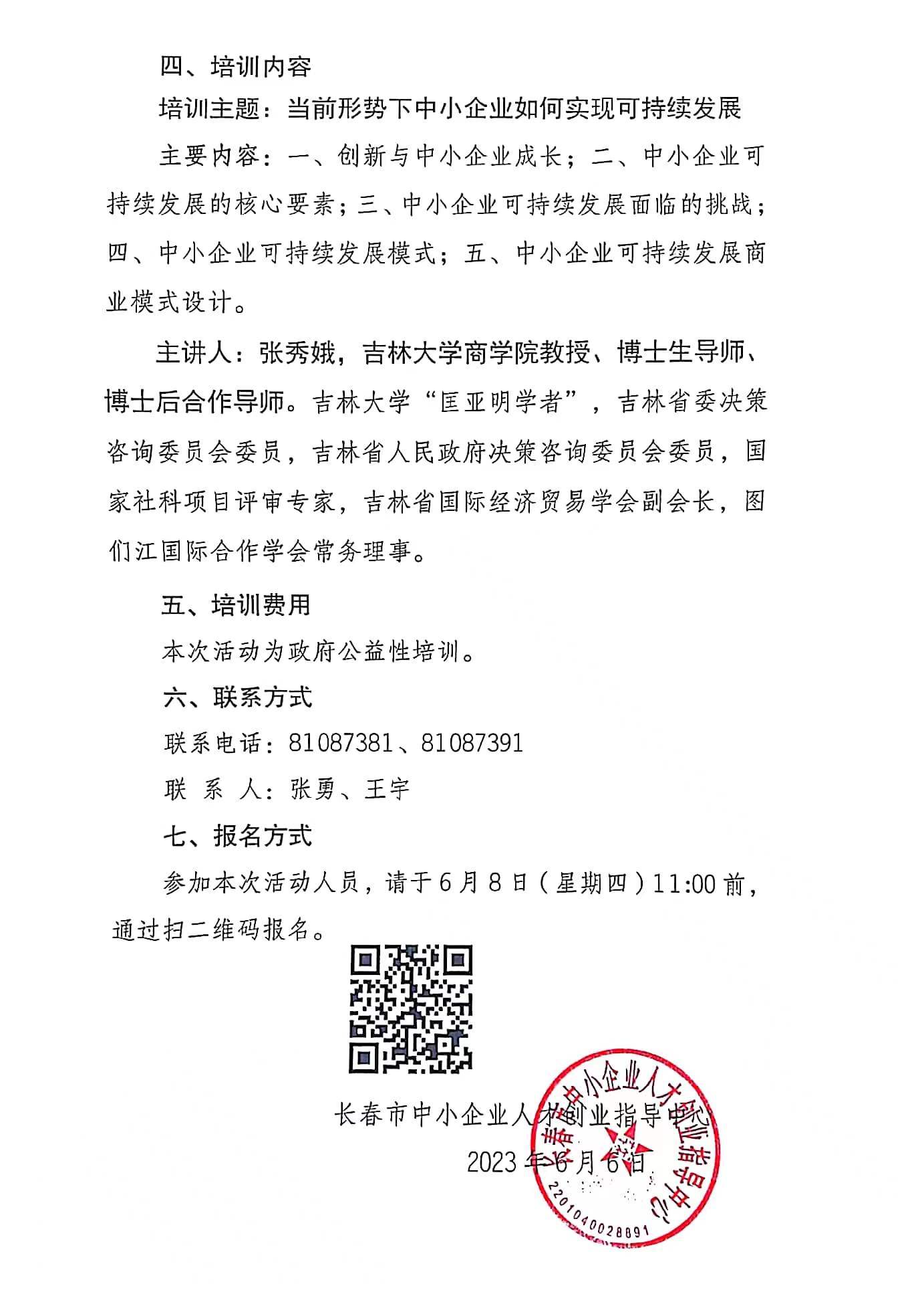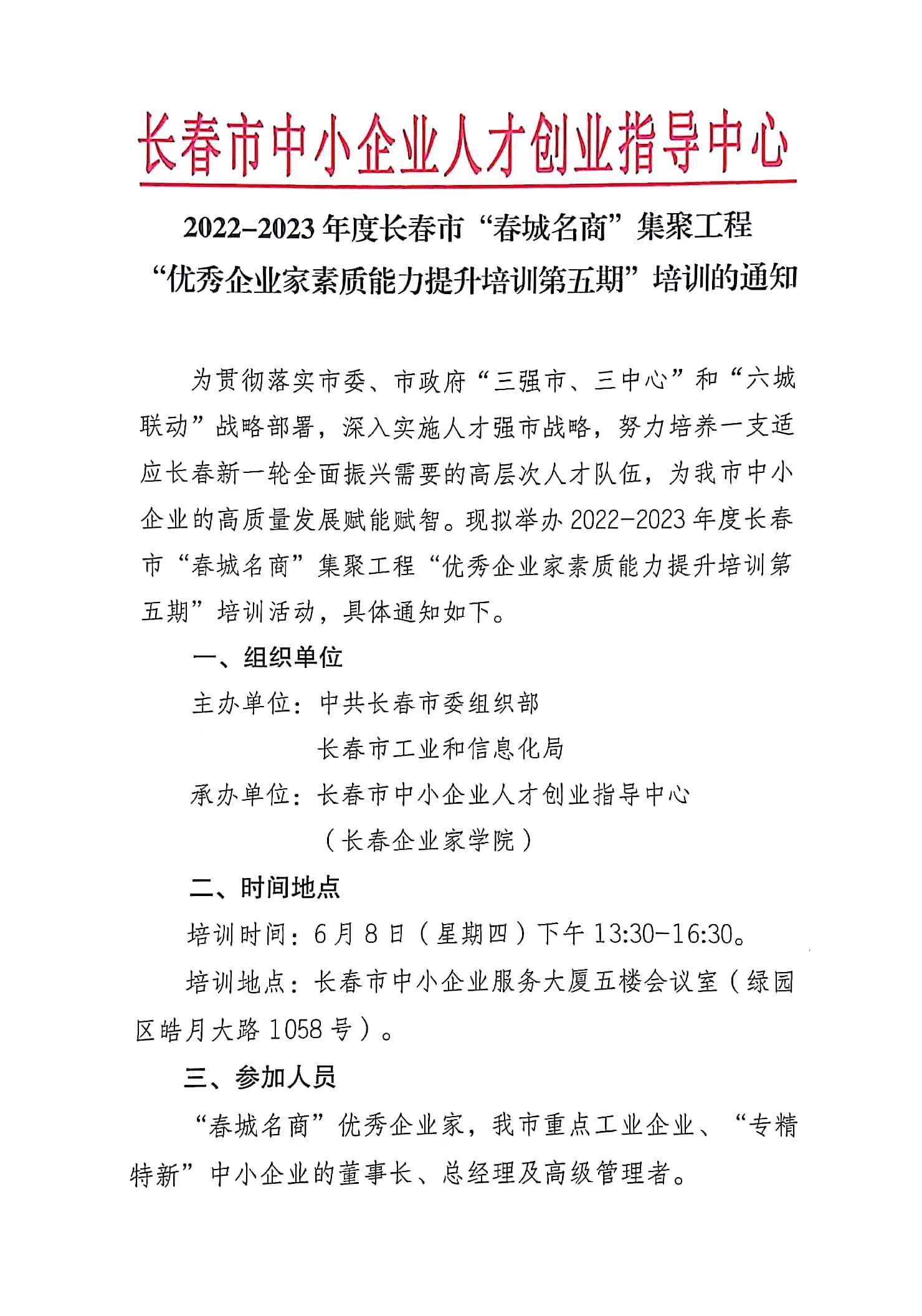 2022-2023年度长春市“春城名商”集聚工程“优秀企业家素质能力提升培训第五期”培训的通知