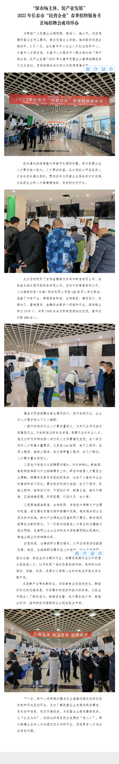 “保市场主体,促产业发展”2023年长春市“民营企业”春季招聘服务月首场招聘会成功举办