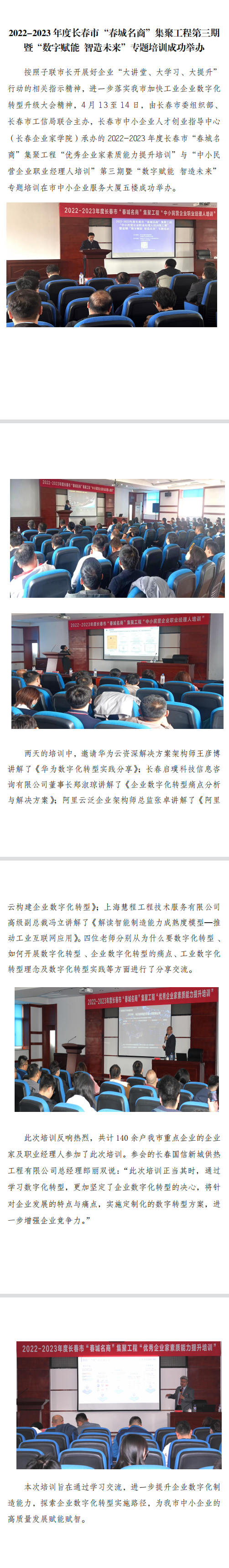 2022-2023年度长春市“春城名商”集聚工程第三期暨“数字赋能 智造未来”专题培训成功举办