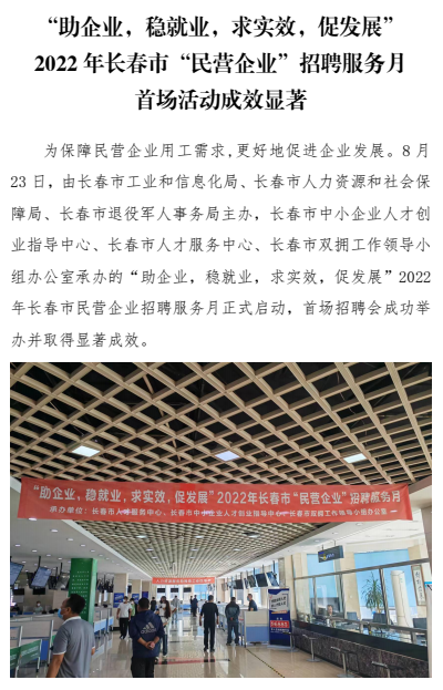 “助企业,稳就业,求实效,促发展”2022年长春市“民营企业”招聘服务月首场活动成效显著