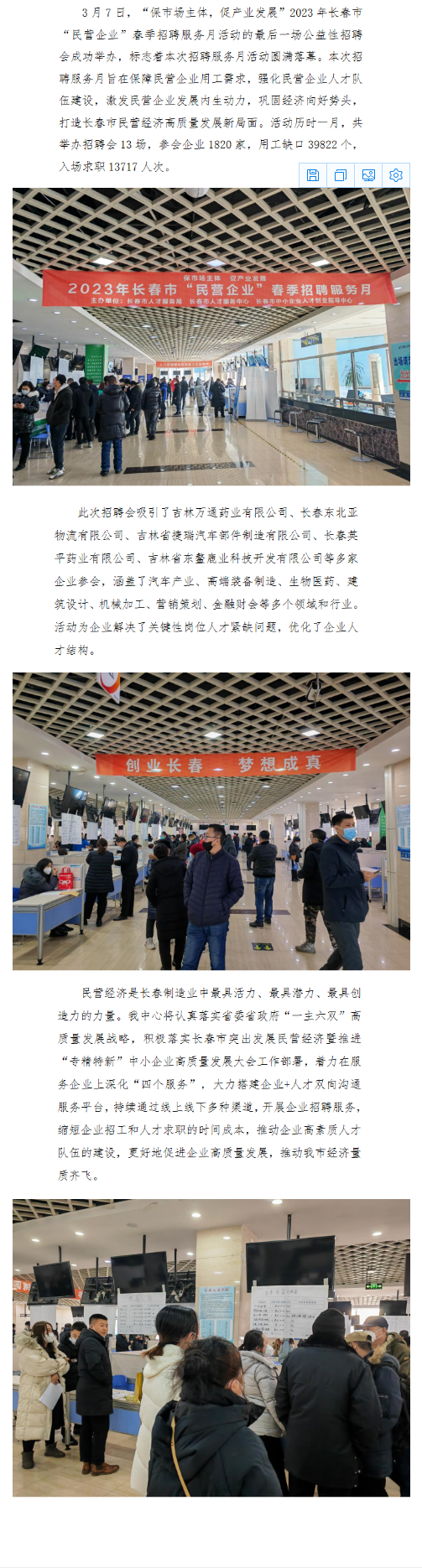 “保市场主体,促产业发展”2023年长春市“民营企业”春季招聘服务月活动圆满落幕