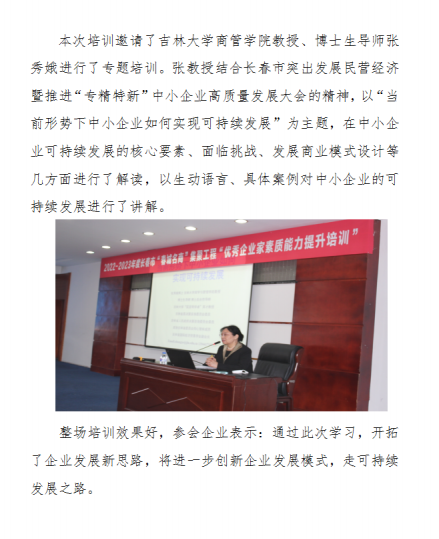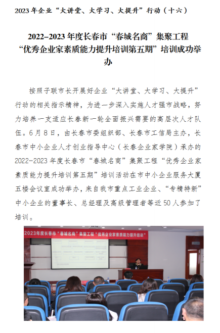 2022-2023年度长春市“春城名商”集聚工程“优秀企业家素质能力提升培训第五期”培训成功举办