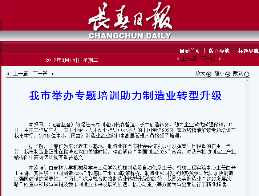 2017年3月14日长春日报新闻报道