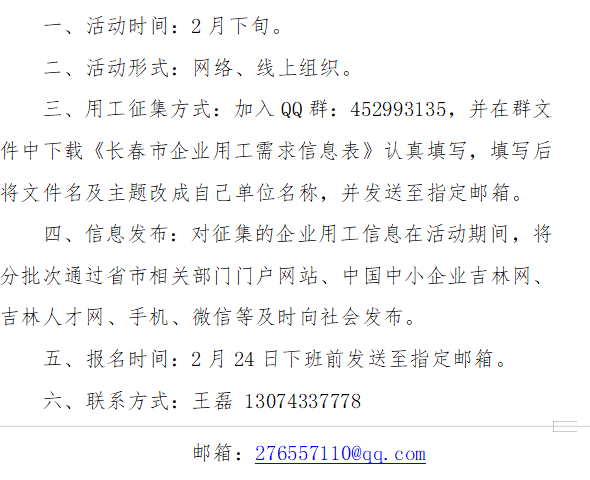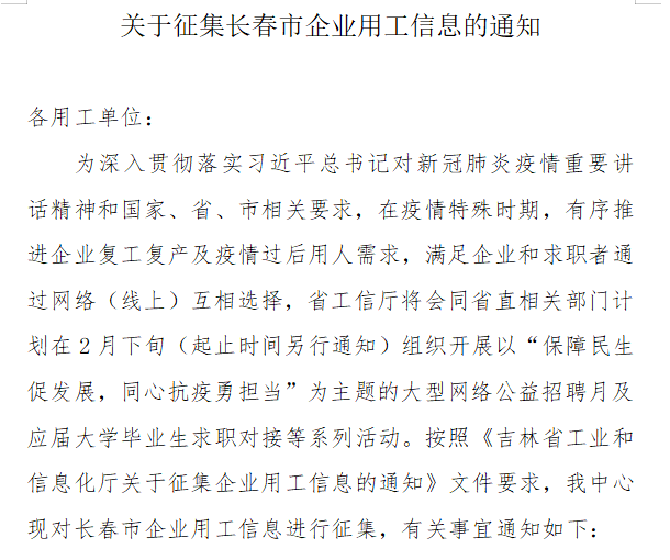 关于征集长春市企业用工信息的通知