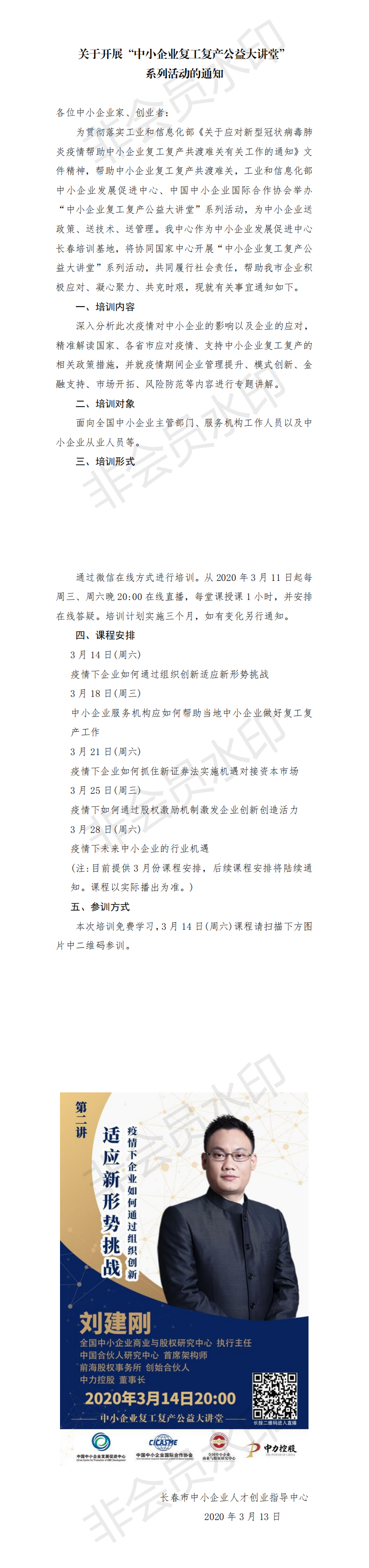 关于开展"中小企业复工复产公益大讲堂"系列活动的通知