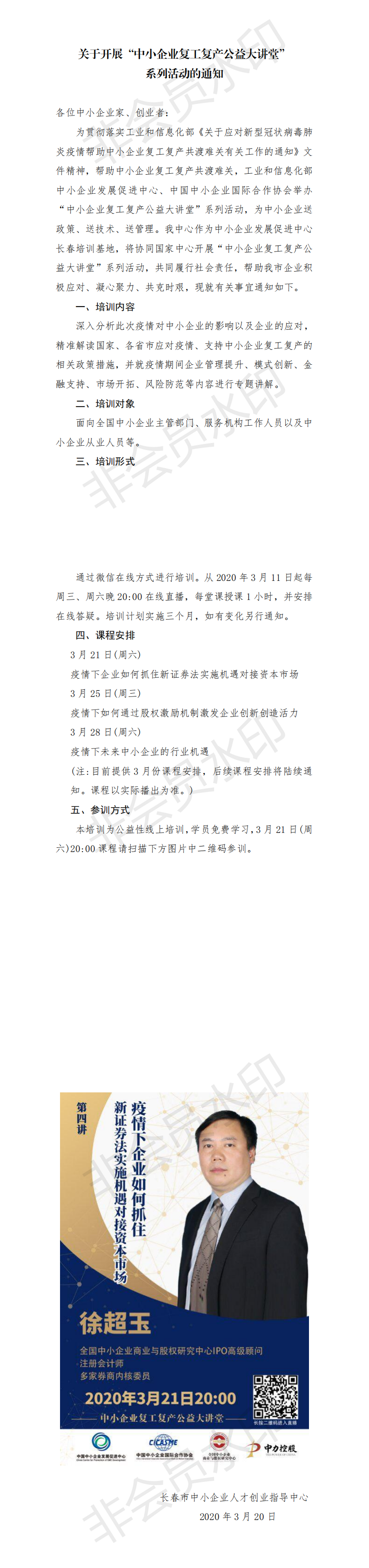 关于开展“中小企业复工复产公益大讲堂”系列活动的通知