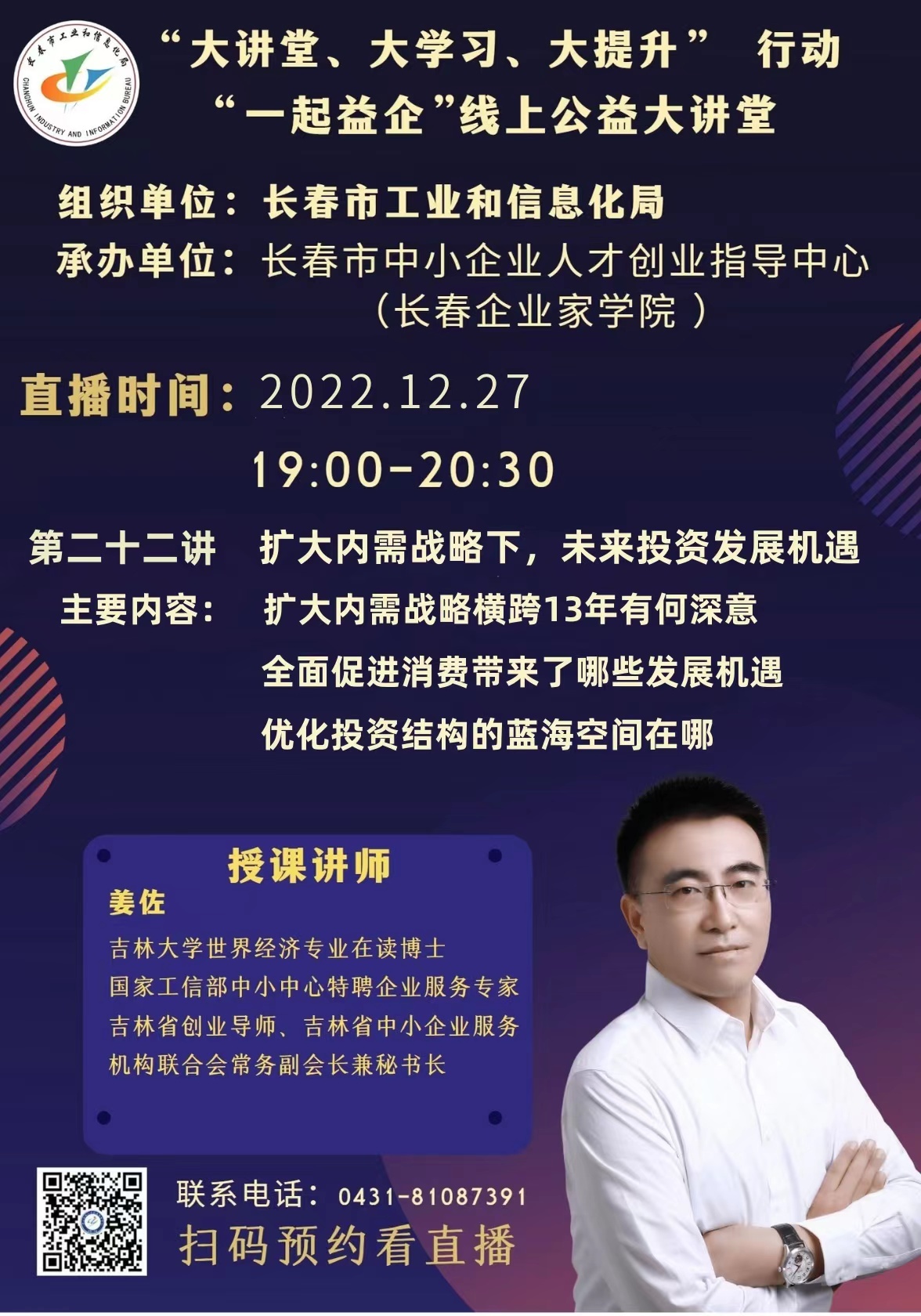 《扩大内需战略下,未来投资发展机遇》定于12月27日晚19:00直播分享