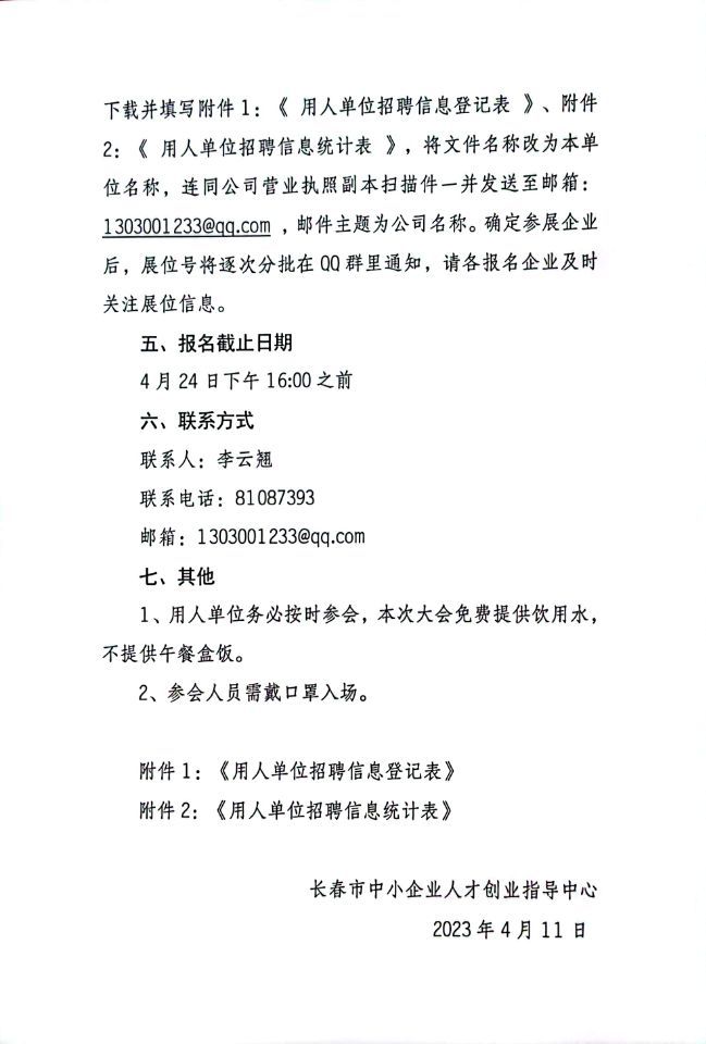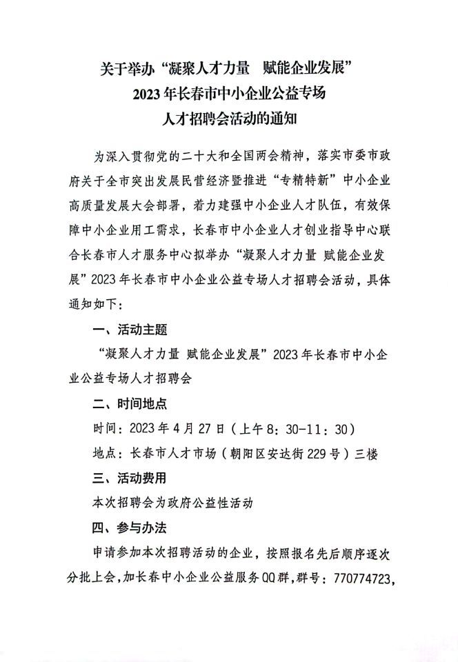 关于举办“凝聚人才力量,赋能企业发展”2023年长春市中小企业公益专场人才招聘会活动的通知