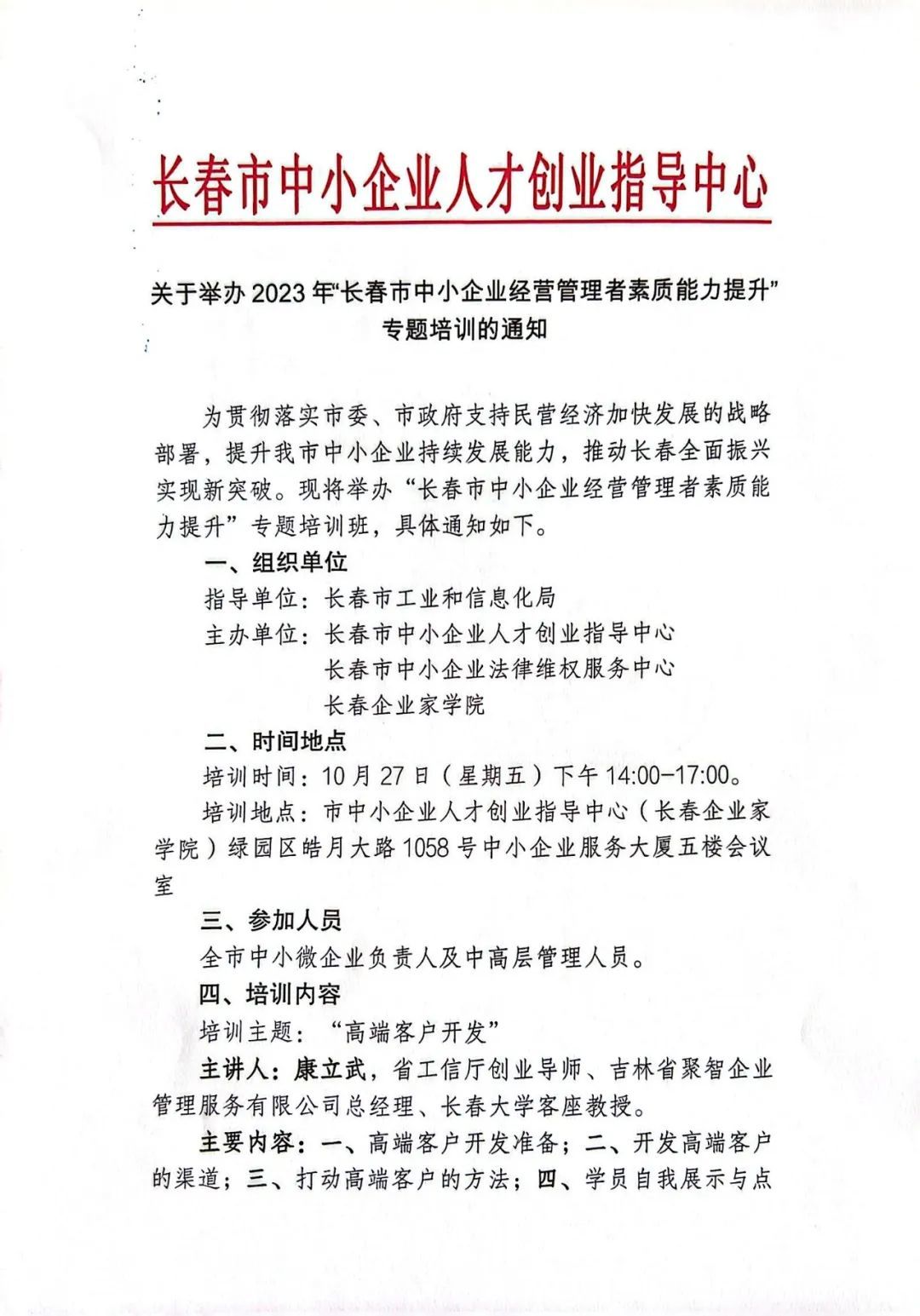 关于举办2023年“长春市中小企业经营管理者素质能力提升”专题培训的通知