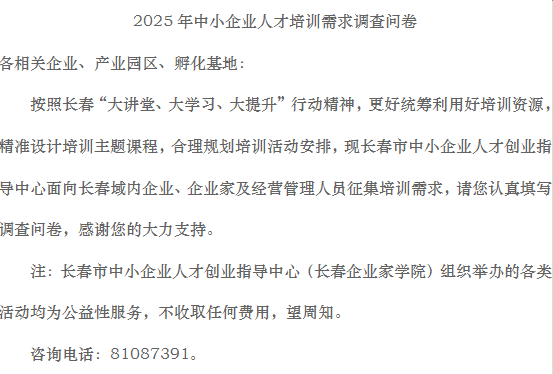 您好,欢迎来到长春市中小企业人才创业指导中心