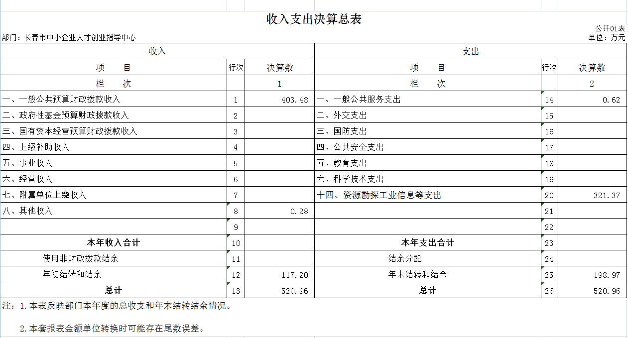 一、收入支出决算总表