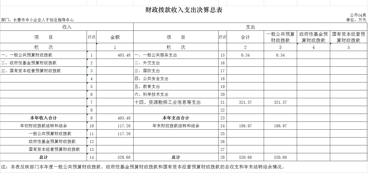 四、财政拨款收入支出决算总表