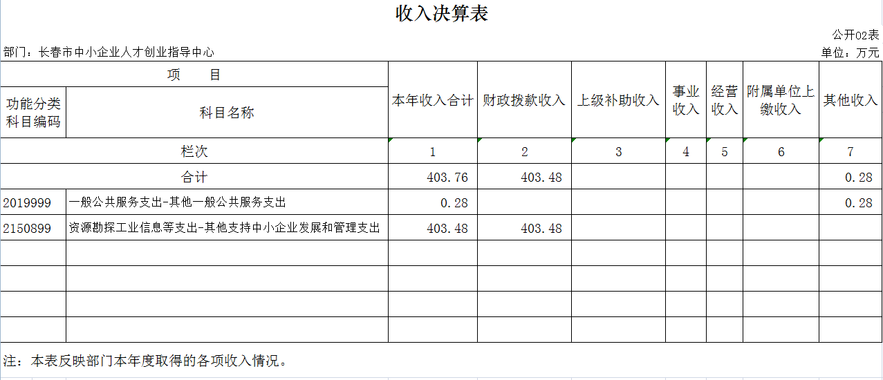 本年收入合计403.76 万元,其中:财政拨款收入 403.48 万元,占 99.9%;其他收入 0.28万元,占 0.1 %。