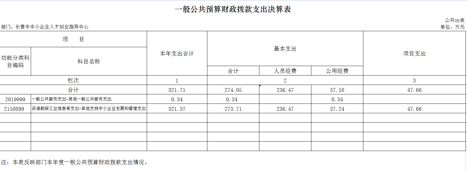 2020年度财政拨款支出321.71 万元,主要用于以下方面:一般公共服务支出0.34万元,占0.1 %;资源勘探工业信息等支出321.37 万元,占99.9%。
