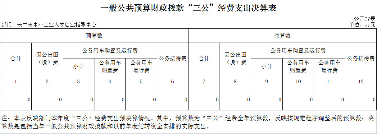 七、一般公共预算财政拨款“三公”经费支出决算表
