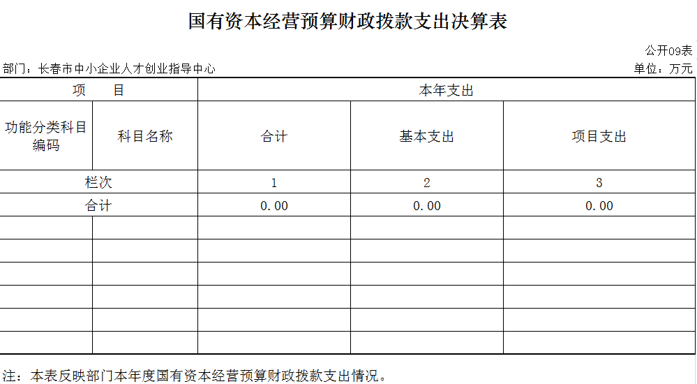 九、国有资本经营预算财政拨款支出决算表