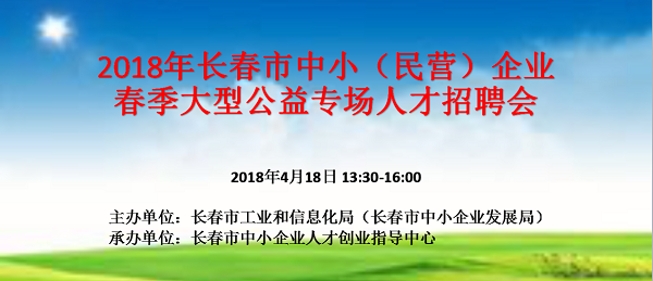 4月18日,由长春市工业和信息化局(长春市中小企业发展局)主办,长春市中小企业人才创业指导中心承办的2018年长春市中小(民营)企业春季大型公益专场人才招聘会,在长春市人力资源产业园成功举办。